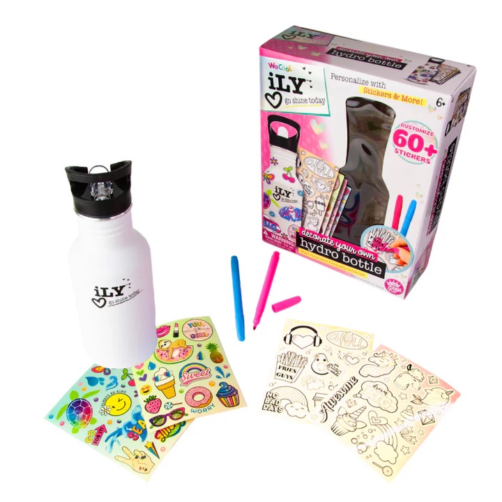 This creative hydro bottle kit measures approximately 11 inches in height and comes with everything needed to create a unique, personalized water bottle.The package includes colorful sticker sheets f