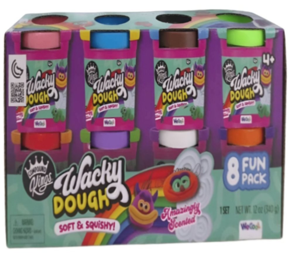 Get ready for endless fun with the COMPOUND KINGS WACKY DOUGH 8PK! This soft, squishy dough comes in 8 vibrant colors, each with its own amazing scent.Roll, mold, and create your wackiest dough maste
