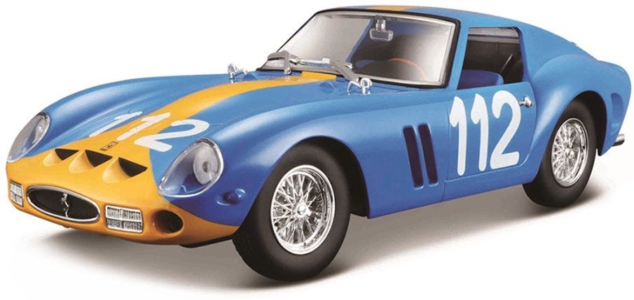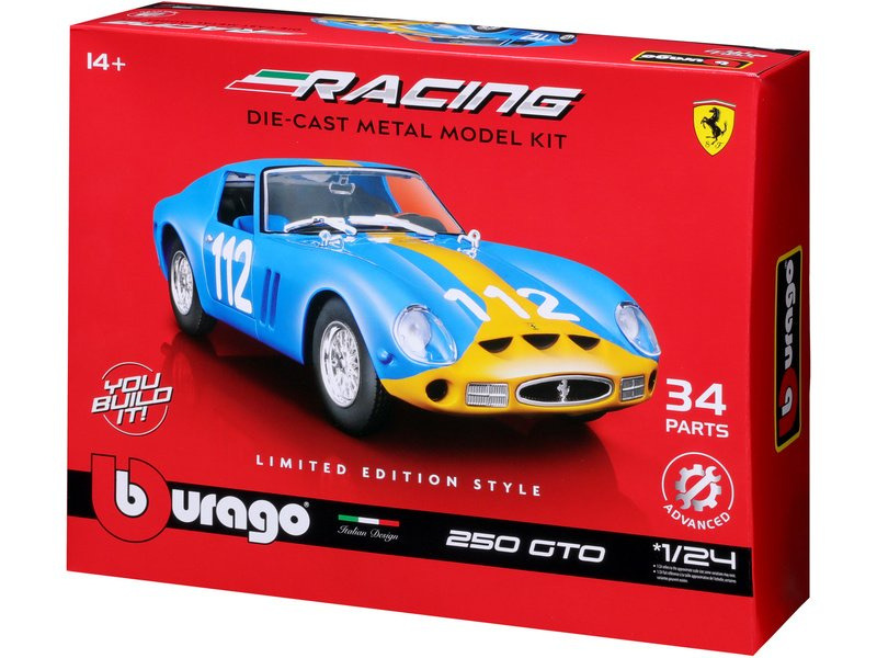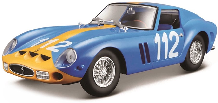 Are you a passionate collector of metal model cars? Or do you just want to make your child, friends or acquaintances happy? Bburago metal model cars are made specifically for this purpose! Metal model car 1:24 Bburago 18-26581 Ferrari GTO 250 not only for collectors.The model is in top quality.The color of the model is blue and it is approximately 18 cm large.In KIT version.Bburago collectible car models are among the most popular on the market, not only thanks to their nice workmanship, selection of car types, but also their affordable price.The body of the models is made of zinc-aluminum alloy, which is combined with plastic parts.The model contains a large number of interior, exterior, engine details and will win you over with its unique design.