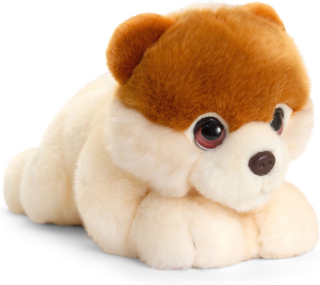 The Keel Signature Cuddle Puppy Pomeranian is a 32cm luxury plush toy featuring expressive eyes and a soft, floppy body.Crafted from high-quality materials with weighted paws, this UK-designed Pomeranian is perfectly weighted for realistic, comforting hugs.