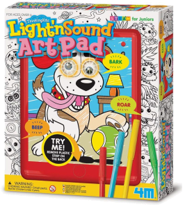 Cool characters come to life with the 4M Light 'n Sound Art Pad STEAM ThinkingKits.Color the characters using the 4 colored pens.Press the button on the pad to hear character-related sound effec