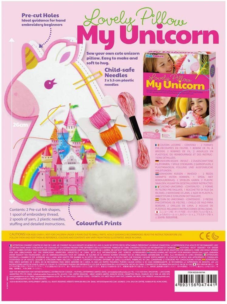 Sew your own Soft and cuddly Unicorn pillow.Easy to make and soft to hug.Perfect to light up any room as a decoration or as an adorable doll.Includes Unicorn pattern, plastic needle, floss and instructions.Recommended for age 5 years and up.