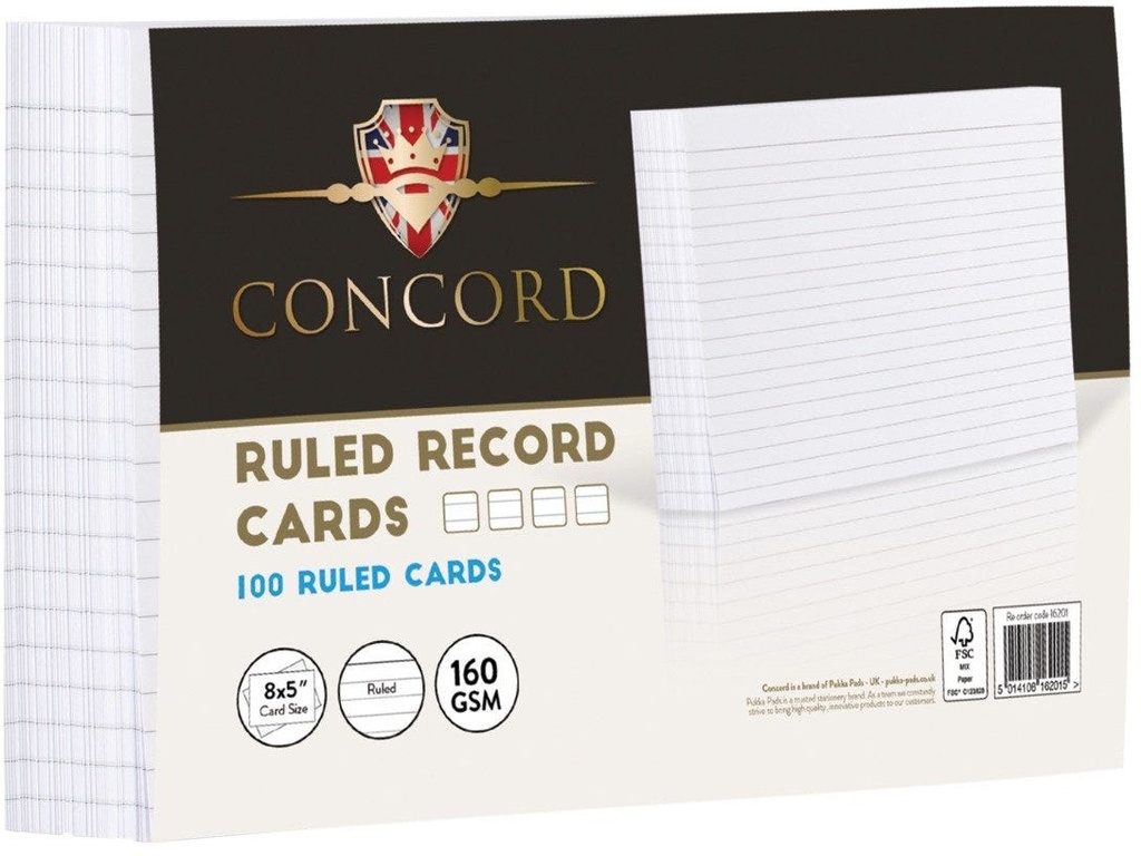 8x5 White Ruled Record Card