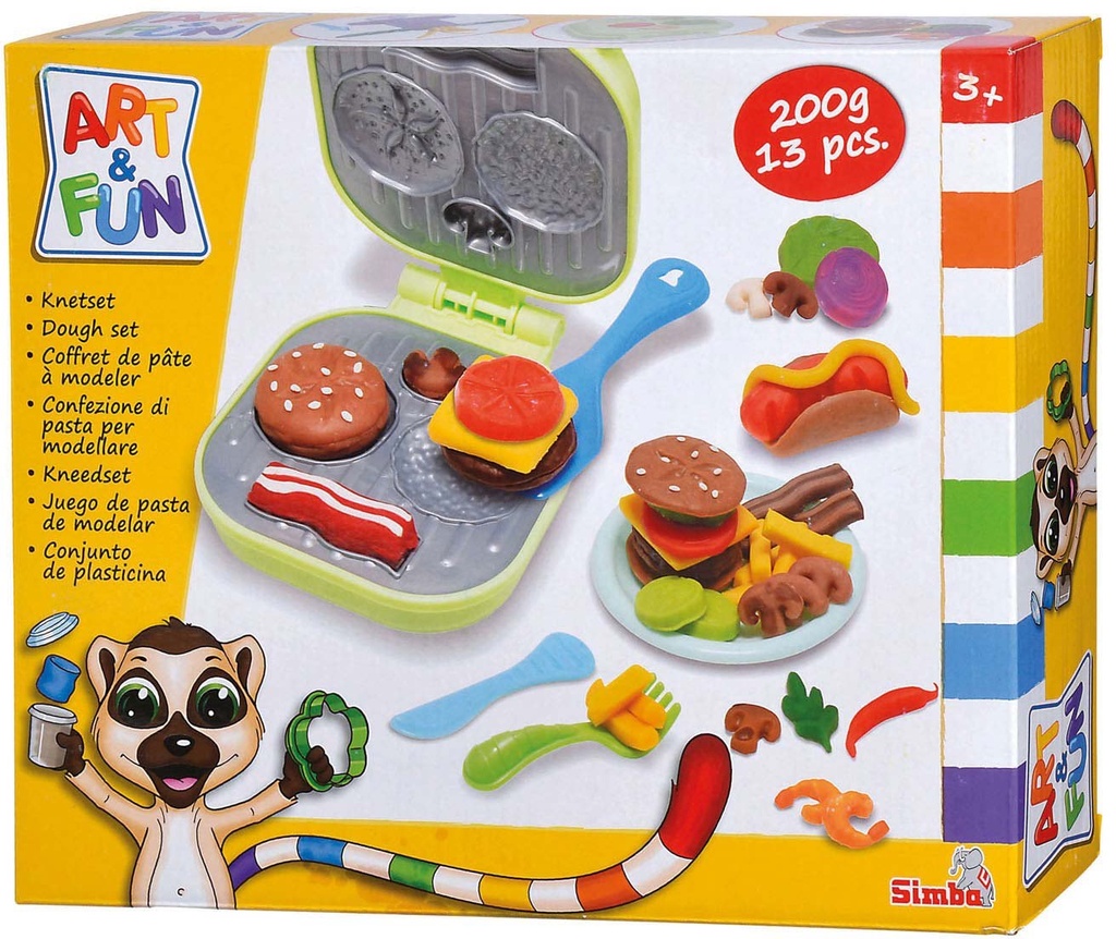 Art & Fun Hamburger Playdough Set, 4 x 50 g, Hamburger Grill, 13 Pieces, Children's Playdough, Accessories, Ages 3 and Up.Warning! Not suitable for children under 3 years.
