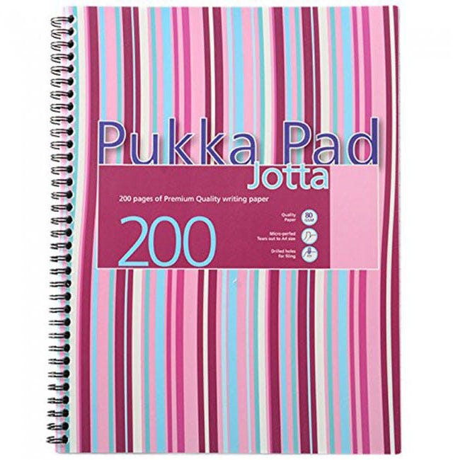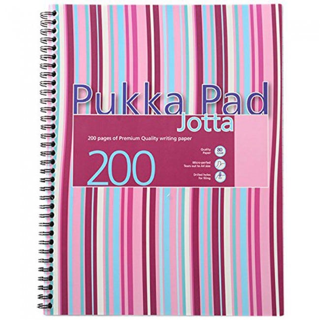 This handy Pukka Jotta notebook contains 200 pages of quality 80gsm paper, which is feint ruled with a margin for neat note-taking.The durable notebook has perforated pages for easy removal, polypropylene covers and a wire binding, allowing it to lie flat for easy note-taking.