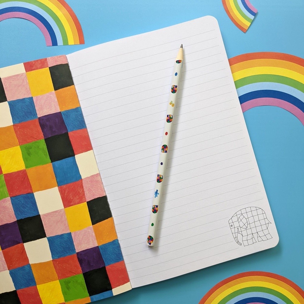 Feel inspired to journal your ideas with this charming soft cover notebook featuring the beloved artwork of Elmer the Elephant.