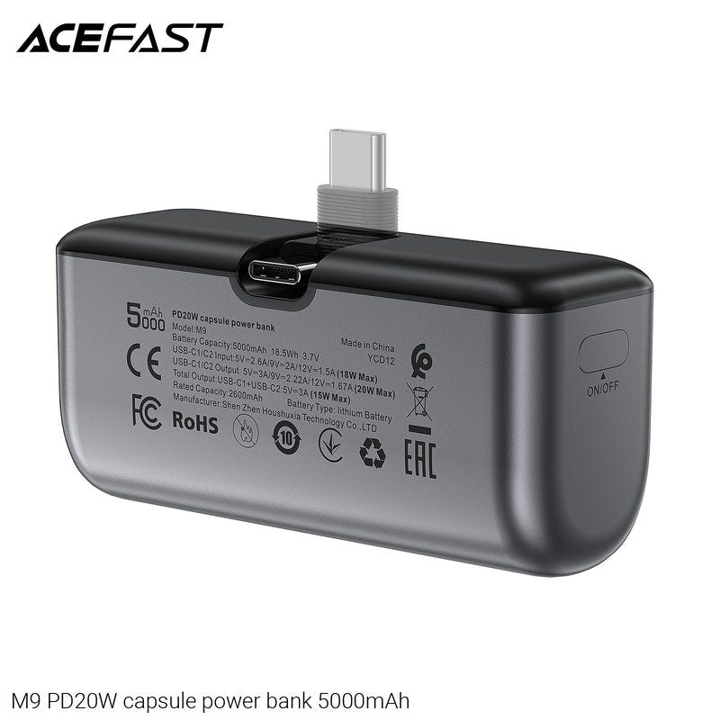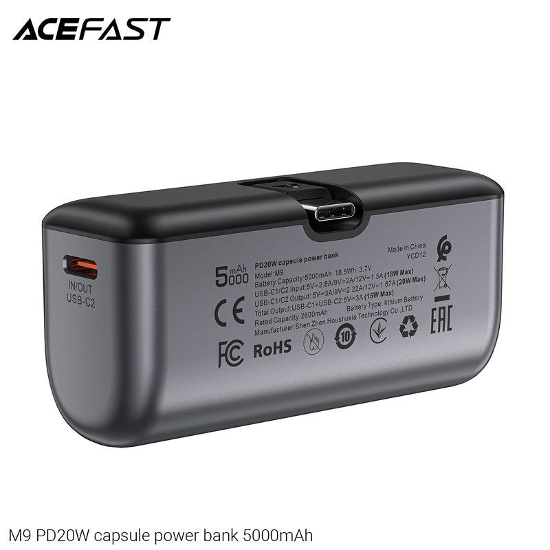 Battery capacity: 5000mAh 18.5Wh 3.7V, USB-C1/C2 input: 5V3A, 9V2A, 12V1.5A (18W Max), USB-C1/C2 output: 5V3A, 9V2.22A, 12V1.67A (20W Max), Total output: USB-C1+USB-C2: 5V3A (15W Max), Rated capacity: