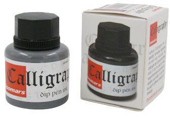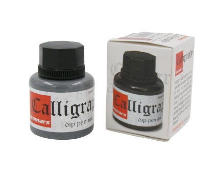 Isomars Calligraphy Dip Pen Ink is a pigmented ink for calligraphy/fountain pens, steel brush, crow quill nibs/holders