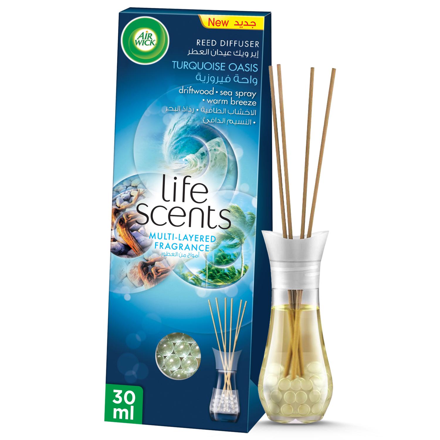 Air Wick Life Scents Reed Diffuser, Turquoise Oasis Scent (Driftwood, Sea Spray & Warm Breeze), 30ml