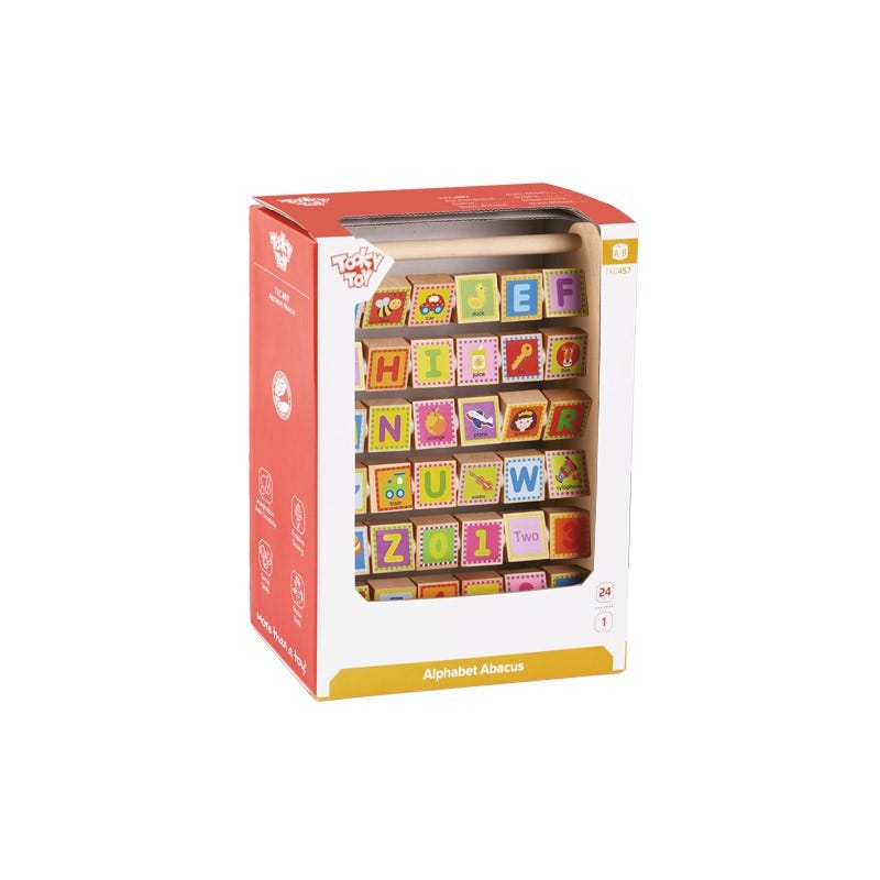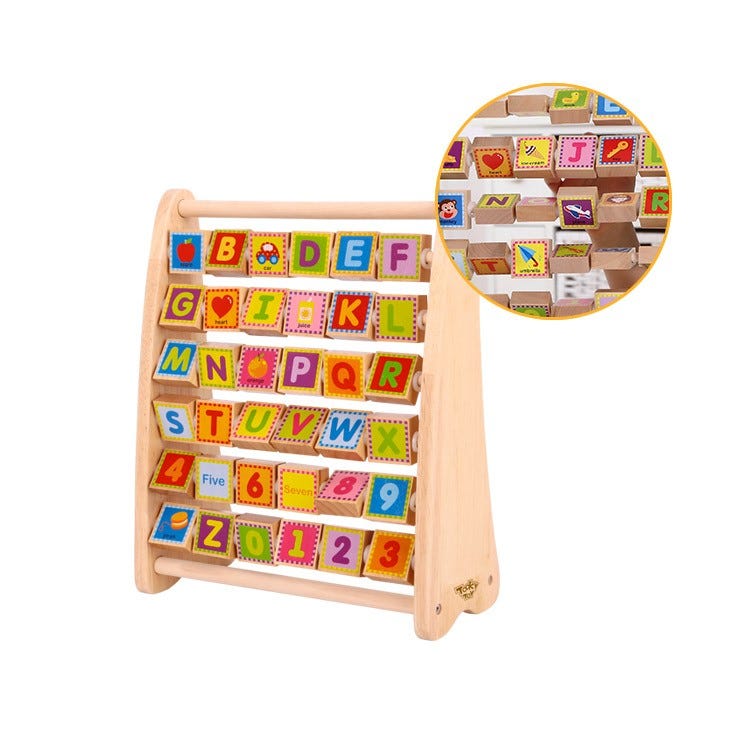 This lovely wooden alphabet frame helps children with letter recognition.Each block comes with both the alphabetic letter, number, and illustration.The spinning blocks encourages children to play,