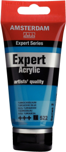Amsterdam Expert Series acrylic paint in Turquoise Blue (522) is an opaque color with an excellent lightfastness ( and ). Amsterdam Expert SeriesOur Expert Series acrylic paints offer the viscosity, pigmentation level and lightfastness that professionals demand.Use the paint straight from the tube or thinned with a little bit of water or one of our acrylic mediums.Heavy body paint for firm brush strokes and knife marks, great texture and a soft satin finishMade with high concentrations of artist-quality pigments with the highest degrees of lightfastnessFormulated with 100% acrylic resin binder, resulting in an exceptionally durable and flexible paint film with a uniform degree of glossOdorless, water-based formula that becomes waterproof and permanent when dryExtensive range of 70 colors with a great variety of opacity, including 28 mono-pigmented colorsAdheres to virtually any slightly porous surface, including canvas, paper, cardboard, wood, stone and cementProudly crafted in the Netherlands on triple roll mills