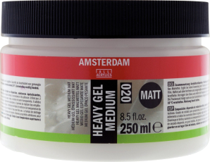 If you’re looking for some extra volume and dimension, try mixing your acrylic colors with one of the Amsterdam gel mediums.These mediums offer a sharper, pastier texture and give your work, depending on the selected gel, a glossier or more matt finish.Adding more of this medium will result in higher transparency of the color.Due to their adhesive properties, these gels also work well for different mixed media techniques.Amsterdam gel mediumAvailable in gel, heavy gel and extra heavy gel versions in both matt and glossy finishesMakes acrylic paint thickerAllows application of extremely thick layers of acrylic color in one strokeAlso suitable for mixed media techniquesMilky white when wet, dries colorless and transparentWaterproof when dryClean utensils with waterApply at temperatures above 10° C and store free of frost