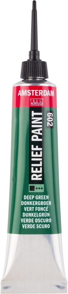 Amsterdam relief paint in Deep Green (602) is an opaque colour with an excellent lightfastness ( and ). Amsterdam relief paintOur relief paints are a great tool to create clearly vis