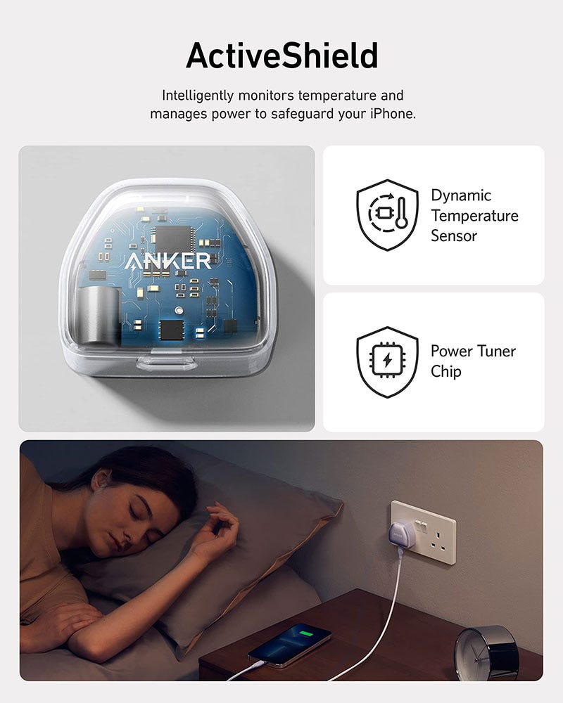 Designed for iPhone: Provide full-speed 20W charging for the iPhone 13.High-Speed Charging: 20W USB-C charging gives you the power you need to charge up your iPhone to 50% in just 25 minutes—that’s up to 3 times faster than your old 5W charger.Advanced Safety Features: Equipped with our all-new ActiveShield safety system to offer enhanced protection.Features a Dynamic Temperature Sensor which actively monitors temperature, and a Power Tuner Chip which adjusts power output to safeguard your connected device.