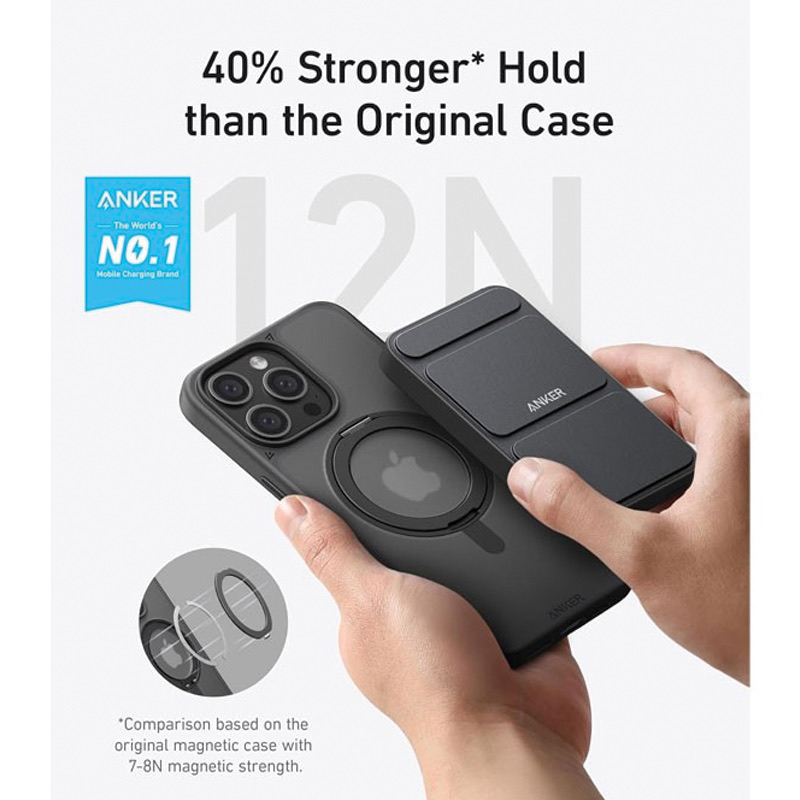 Anker A90H1H0C Maggo Magnetic Case With Stand 360 Ring Stand, Clear C