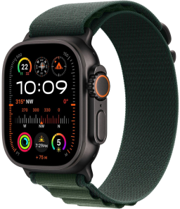 Apple Watch Ultra 2 GPS + Cellular 49mm Black Titanium Case with Dark Green Alpine Loop - Small