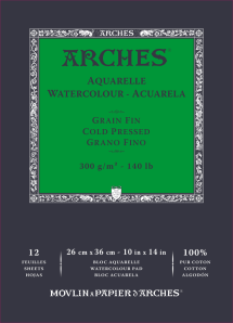 Ideal for watercolor painting, as well as all wet techniques such as ink, gouache, and acrylic.3 textures: cold-pressed, hot-pressed, and rough.ARCHES® Aquarelle has an even, natural grain.The choice of texture will depend on the medium used by the artist.As a general rule, though, texture is a matter of personal choice for the artist, part of the process of artistic creation and expression.The cotton gives the paper beauty, a natural, lasting whiteness, and an inimitable touch, as well as strength and longevity.