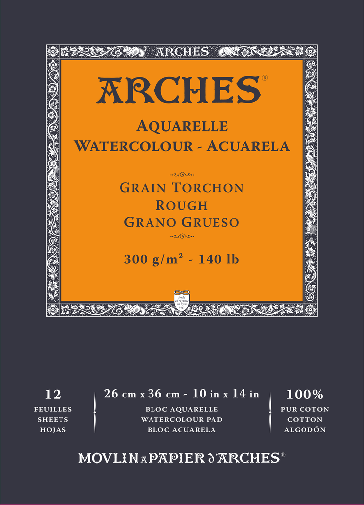 Ideal for watercolor painting, as well as all wet techniques such as ink, gouache, and acrylic.3 textures: cold-pressed, hot-pressed, and rough.ARCHES® Aquarelle has an even, natural grain.The choice of texture will depend on the medium used by the artist.As a general rule, though, texture is a matter of personal choice for the artist, part of the process of artistic creation and expression.