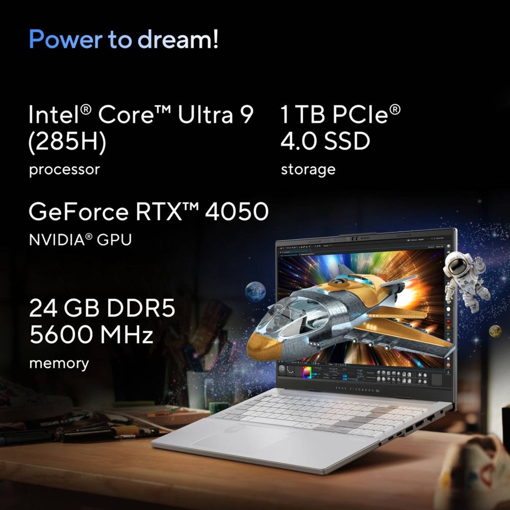 Asus Vivobook Pro 15 Gaming N6506CU-MA034W, 15.6inch 3K, Intel Core Ultra 9-285H, 6GB NVIDIA GeForce RTX 4050 Graphics 24GB Ram, 1TB SSD, Windows 11 Home, Gray - U9MB1SS3BJ.ASUS Vivobook Pro 15 delivers exceptional performance for pro creators and pro gamers.It empowers professional creativity, enhances your lifestyle, and immerses you in the world of gaming.