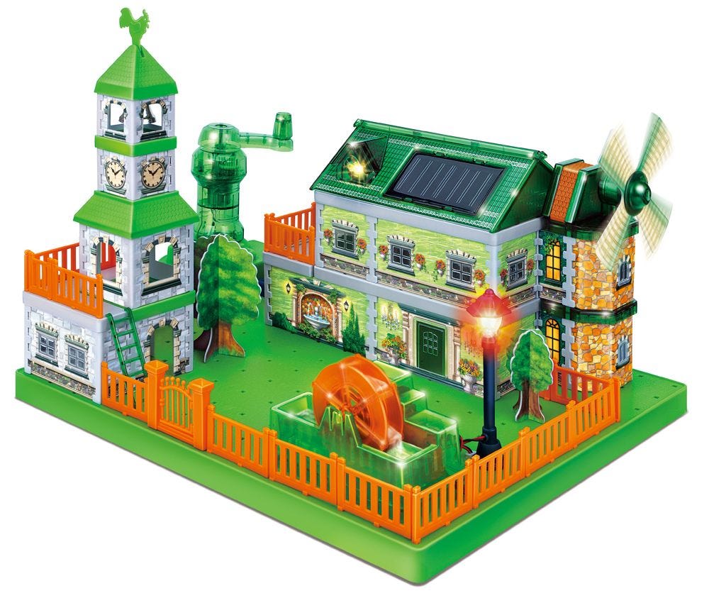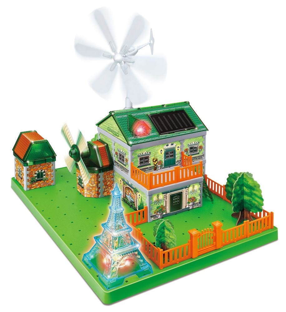 Explore different types of renewable Eco-Energy from SOLAR, WIND, OR GENERATOR.Build and create your own 3D construction.Eco-learning with 5 multi-construction projects.Ideal for eco-friendly creat