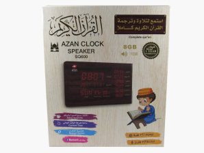 Easily mounted on wall or set on a table as per preferenceHigh quality Azan Sounds as a call for prayerAllows you to customise the alerts that inform you of the prayer times for your areaComplete QuranCurrent Time displayBluetooth Connectivity8 GB Memmory15 Language19 Reciters