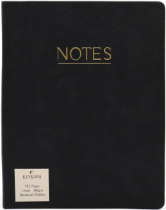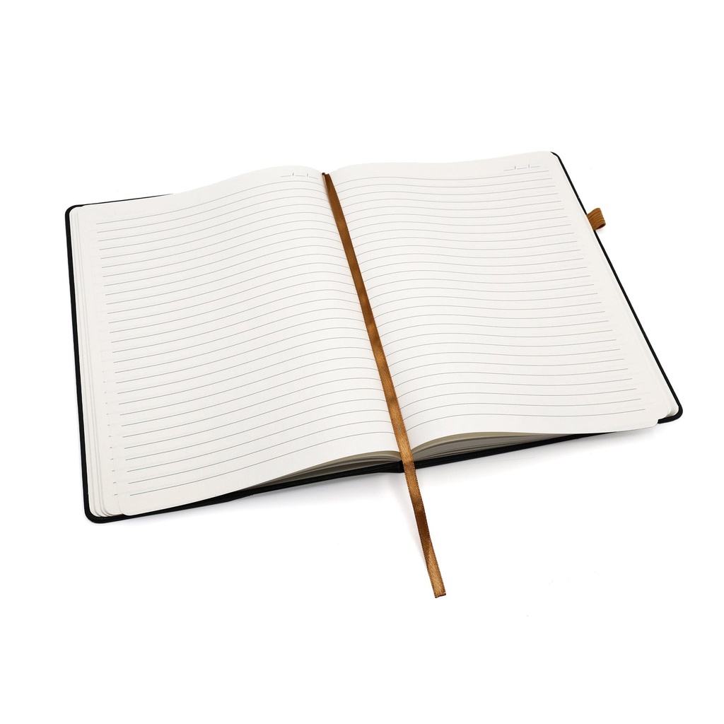 Feel inspired to journal your ideas with this smart notebook featuring a premium textured faux leather cover design with gold foil and matching page ribbon marker.