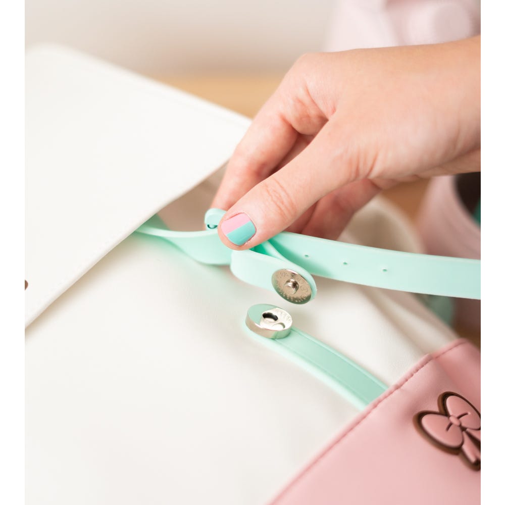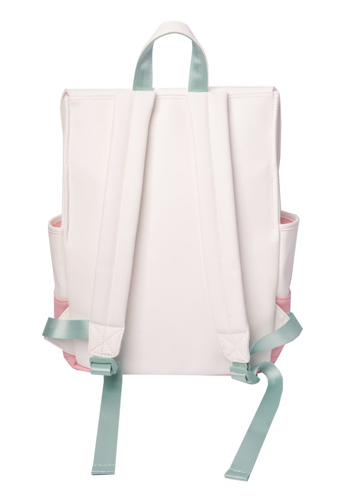 It has a main pocket with flap and clasp closure, plus two side pockets and two inside pockets.It includes a small handle and two adjustable handles to carry on your back.Made of polyester with silicone patches.Manufactured under 100% official license.