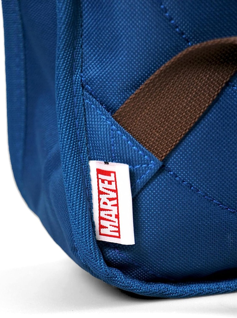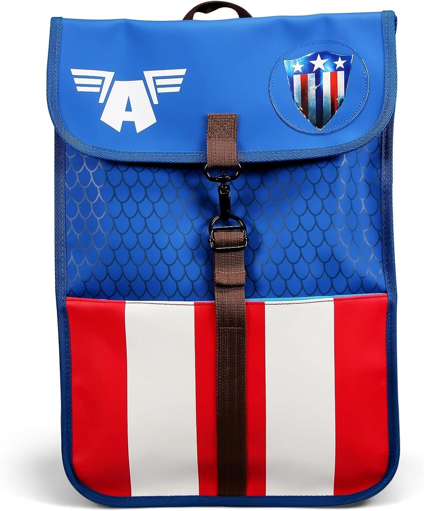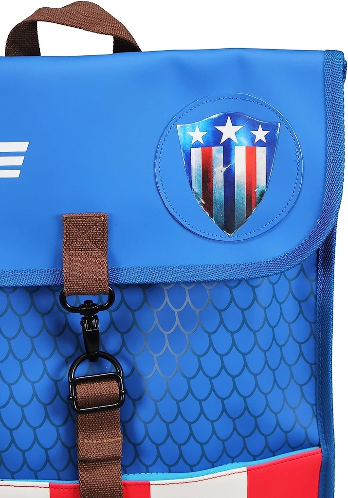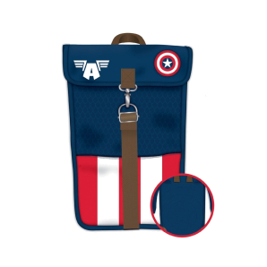 Attractive blue backpack inspired by the superhero Captain America.The backpack has length-adjustable straps and a handle for easy carrying in the hand