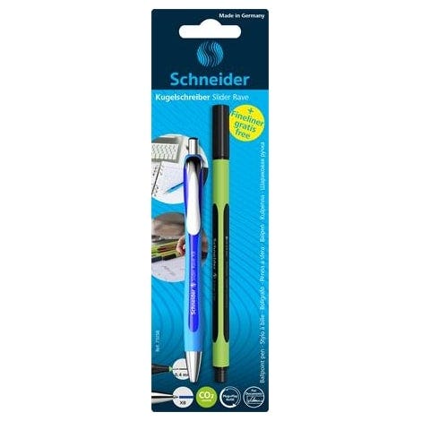 Ballpoint pen with Viscoglide® technology· For extraordinarily smooth and gliding writing· Eco-friendly and resource-saving *pen body made of 68% recycled plastic· Line width extra broad (XB)· Writing colour blue· Waterproof according to ink standard ISO 12757-2· Replaceable giant refill Slider 755 XB with wear-resistant stainless steel tip· Replaceable with any of the other Plug+Play refills· Ink dries quickly and is smudge proof when highlighting it later on· Ergonomic shape and rubberised surface· Sturdy metal clip