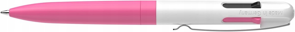 Four-color ballpoint pen with refills: black, blue, neon yellow, and neon pink.The barrel color is white/pink.The Take 4 refill offers the perfect solution for planning and organizing your work.Use the color buttons to quickly and conveniently switch between colors.New refill technology and ink quality ensure exceptionally smooth and fluid writing.Line width: M.The eco-friendly barrel is made from 92% recycled plastic.This four-color ballpoint pen features a replaceable "Take 4" refill, reducing unnecessary waste.The black and blue refills are waterproof according to ISO 12757-2 standards.The durable metal clip allows the pen to be attached to any pocket or notebook.