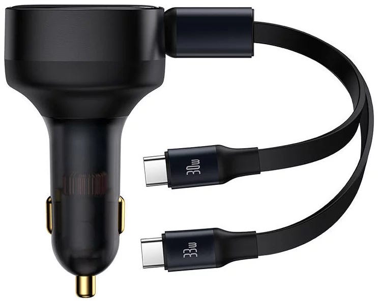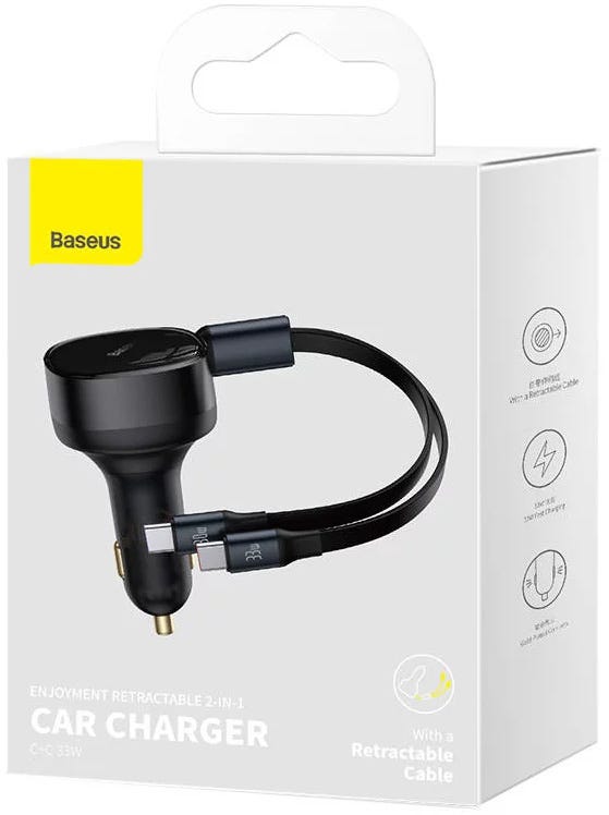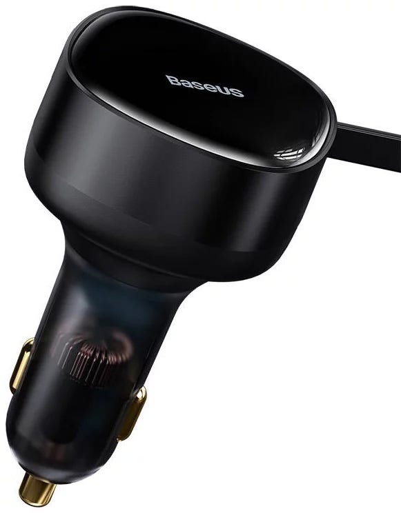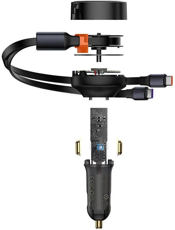 Baseus car charger pull out the cable and it stops at however long you want it to be within the 75cm range, and pull it again, it retracts back inside automatically for storage, keeping it clean and tidy without cable entanglement.