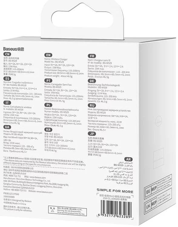 Enjoy unparalleled convenience when charging your phone.The Baseus Simple Mini 3 magnetic charger provides wireless charging with up to 15 watts of power.It is compatible with the iPhone 14, 13 and