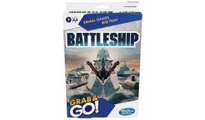 The Battleship Grab and Go is a compact, travel-sized version of the classic naval combat game for ages 7 and up.Featuring a portable flip-open unit, players deploy a five-ship fleet to sink their opponent’s vessels on the go.