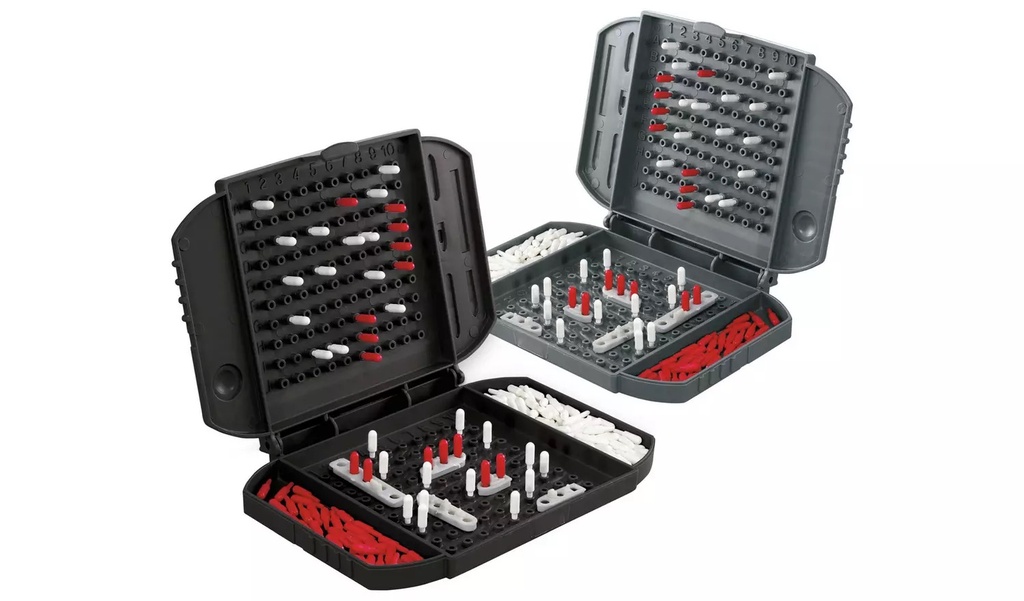The Battleship Grab and Go is a compact, travel-sized version of the classic naval combat game for ages 7 and up.Featuring a portable flip-open unit, players deploy a five-ship fleet to sink their op