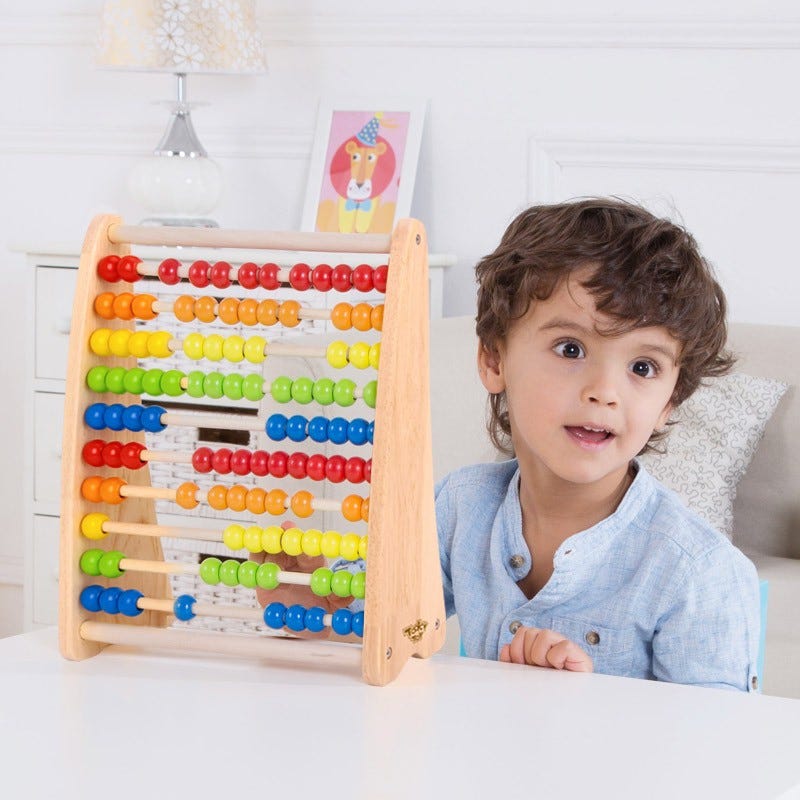 each your child counting with this beautifully made wooden Abacus.Children can have fun through learning to count on this styled abacus.Develop counting , addition and subtraction skills .They also can try to identify different colours of the beads when playing