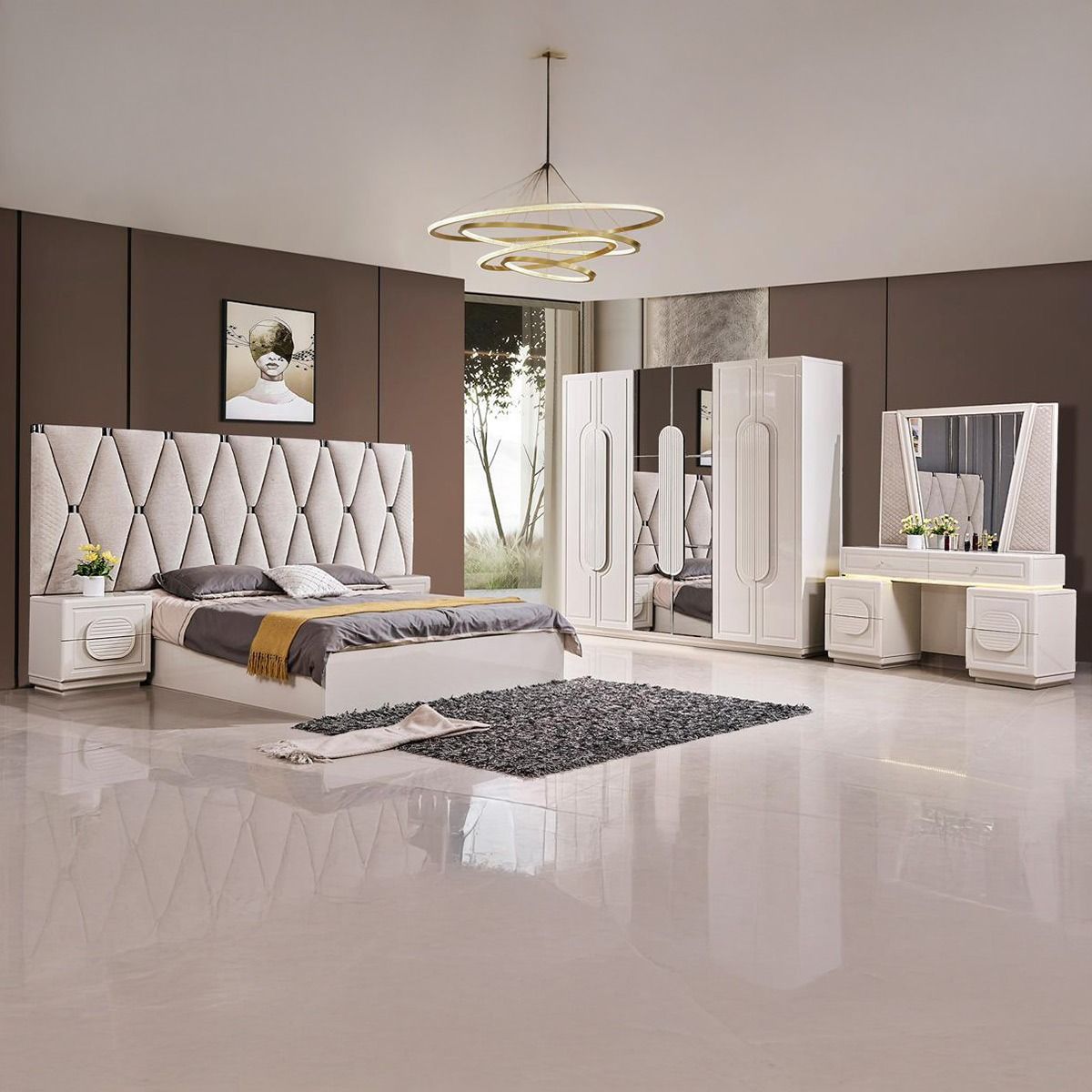 Bedroom Set Modern High Light Grey 180x200cm, Dressing Table, 2 Night Stand, 6 Door Wardrobe5,997.00NovoProduto Limitado