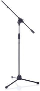 Microphone boom stand with comfortable pushbutton made of chromed zink alloy and rubber coating that allows an easy and fast adjustmentErgonomic knob with rubber coatingJoint, counterweight and base made of loaded nylonNon-slip rubber feetLoaded nylon central jointErgonomic knob with rubber coating