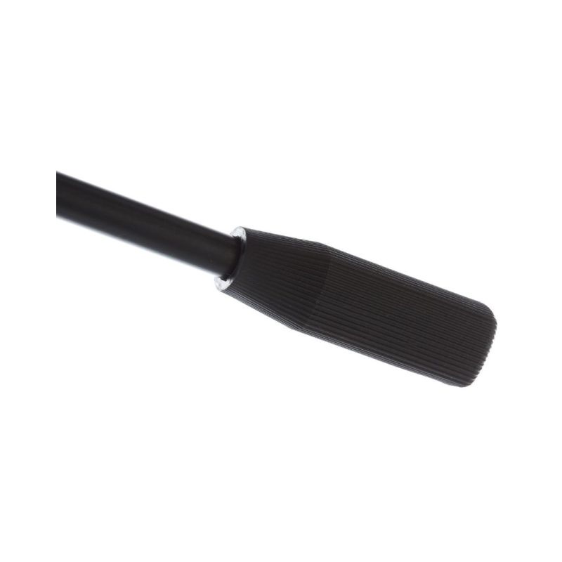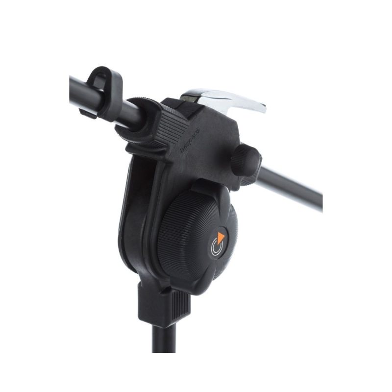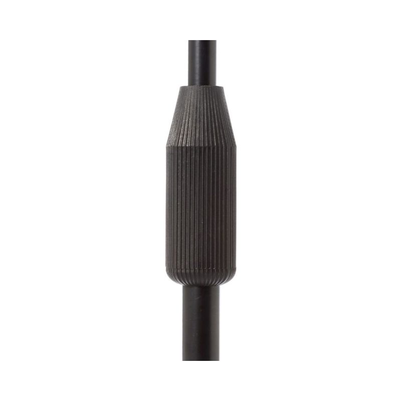 Microphone boom stand with comfortable pushbutton made of chromed zink alloy and rubber coating that allows an easy and fast adjustmentErgonomic knob with rubber coatingJoint, counterweight and base