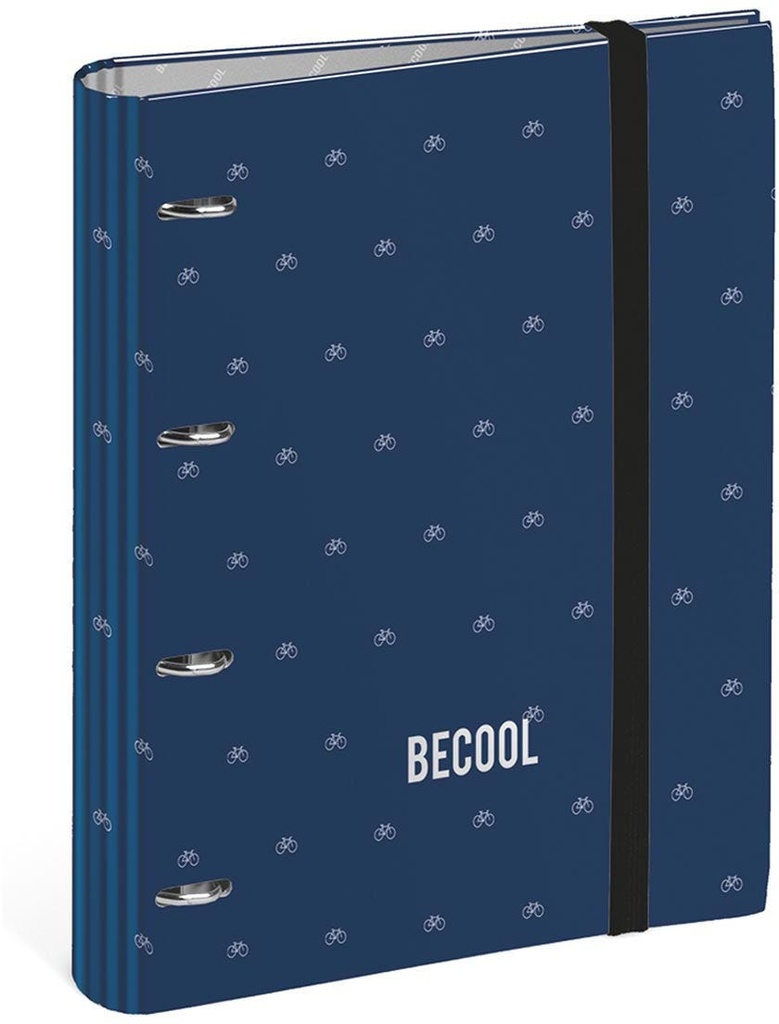 BIKES replacement ring binder is decorated with a navy blue print with a white micro print of bicycles, the most urban Becool. The becool logo stamped in silver on the cover and the interiors in silve