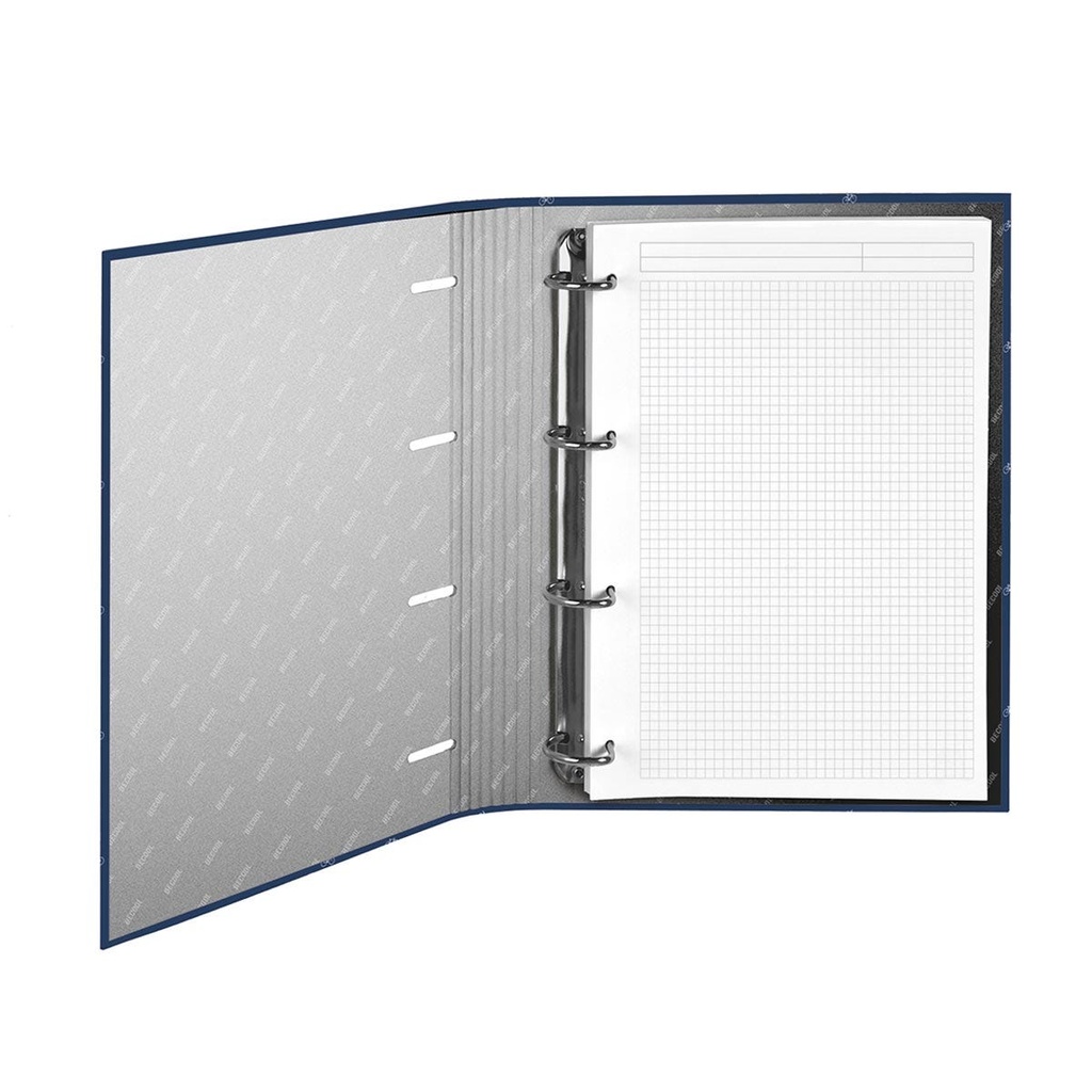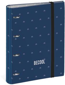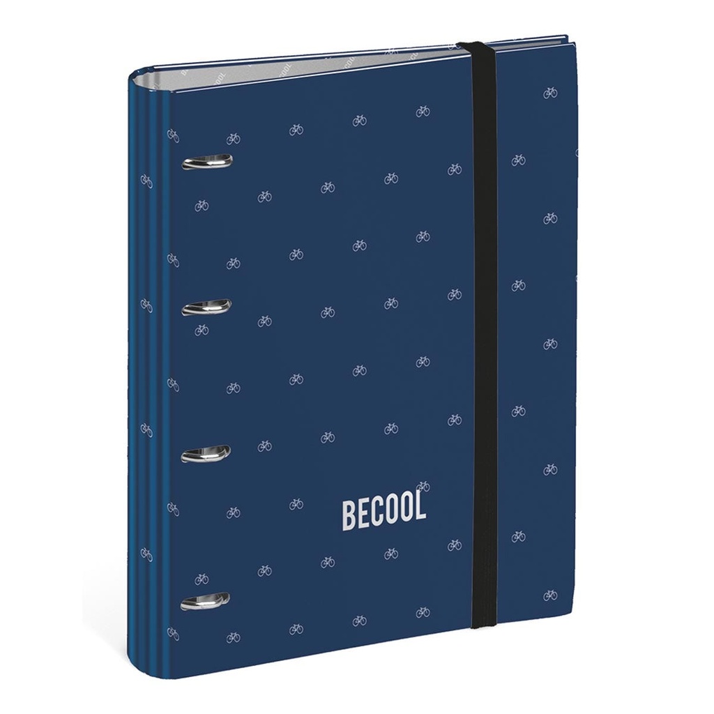 BIKES replacement ring binder is decorated with a navy blue print with a white micro print of bicycles, the most urban Becool. The becool logo stamped in silver on the cover and the interiors in silver as well.BIKES spare ring binder has 4 rings inside and a spare part of 120 squared A4 sheets of 0.5 cm each. Closure with vertical elastic bands.26.5 x 32.0 x 4.5 cm.