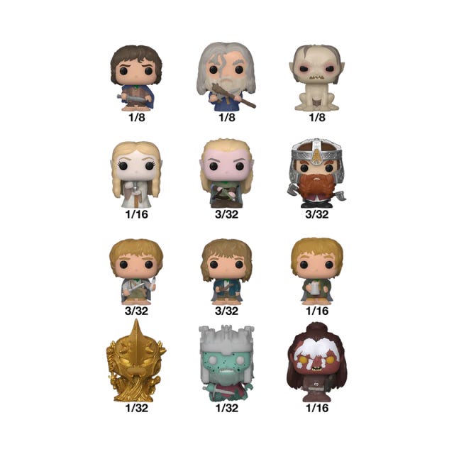 Your favorite The Lord of the Rings™ Pops! have been shrunk into Bitty Pops! Expand your Middle Earth™ collection with this assortment of Bitty Pop! figures featuring your most beloved The Lord of the