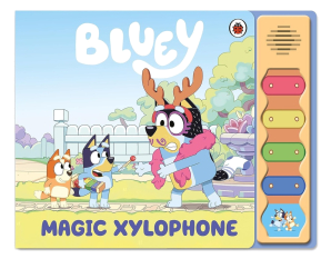 Bluey and Bingo have a magic xylophone that can freeze Dad in space and time.Help Bluey and Bingo freeze and unfreeze Dad by pressing each of the coloured buttons on your Magic Xylophone when you spot them in the story.Also includes a sound button of Bluey and Bingo laughing!This is a brilliantly noisy gift for every Bluey fan!