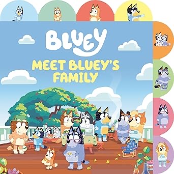 Meet the Heeler family in this sturdy tabbed board book! Based on the wildly successful animated series Bluey, as seen on Disney+Get to know Bluey, Bingo, Muffin, Granny, and the rest of the Heeler family! This tabbed board book is perfect for Bluey fans.