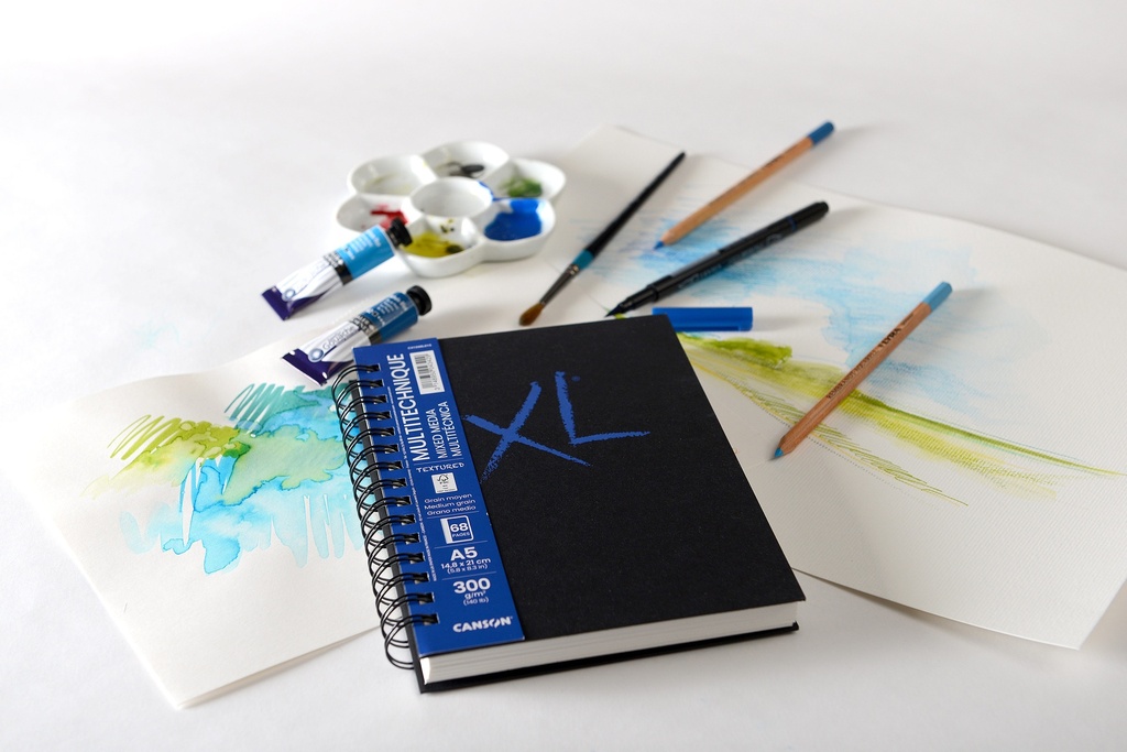 Book Wire Bound Long Side Xl Mixed Media Textured 34Sh/68P A5 300G GRain Fin Portrait