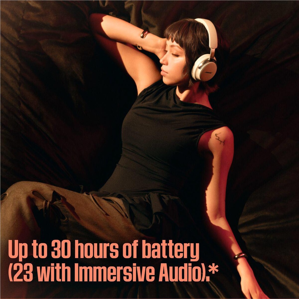 Make every note hit harder with Bose’s best noise cancellation for headphones and spatialised audio that takes what you’re hearing out of your head and places it in front of you for more immersive listening.Crafted with luxe materials, the headphones provide unrivalled comfort and premium design – letting you sink deeper into your favourite songs and sounds.