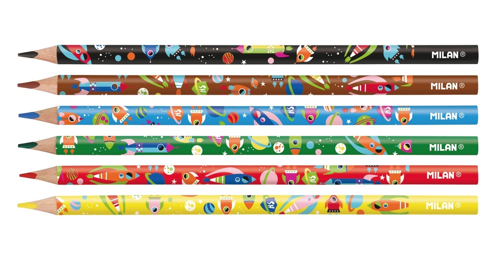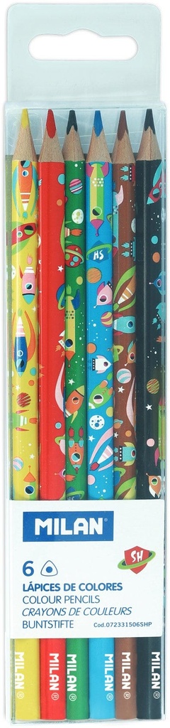 Box 6 triangular metal colour pencils, black wood