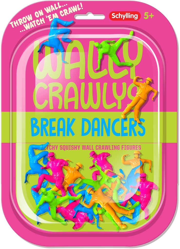 Schylling’s Wally Crawly Breakdancers are stretchy and squishy wall crawling fun! Throw them at the wall or against a window or mirror and watch them twist, tumble, and wrestle their way down.Wally C