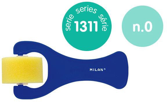 Small smooth sponge roller with short blue plastic handle.Suitable for watercolor and aqueous or tempera techniques.Width: 25mm.Roller diameter: 37 mm.Overall length: 135mm.
