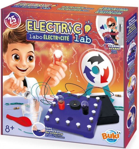 Discover the basics of electricity by building 25 circuits in total safety.Connect the components on the circuit board: bulbs, buzzer, motor, resistorsÖ Discover how electricity flows through your assemblies.Build and use your circuits to create games to test your reflexes, a decision wheel and an alarm for your room.his toy is designed only for children over the age of eight.The product is designed for carrying out experiments with electricity, which present risks for children under eight.Instructions for parents are included in the booklet and must be followed.WARNING! Not suitable for children under 36 months due to small parts which can be ingested.Choking hazard.RETAIN THE PACKAGING FOR FUTURE REFERENCE.The colors and content may slightly vary.WARNING! Children under eight years can choke or suffocate on uninflated or broken balloons.Adult supervision required.Keep uninflated balloons away from children.Discard broken balloons at once.Made of natural rubber latex.WARNING! To be used under the direct supervision of an adult.Presence of functional sharp points and edges.Warning: This toy produces flashes that may trigger epilepsy in sensitised individuals.