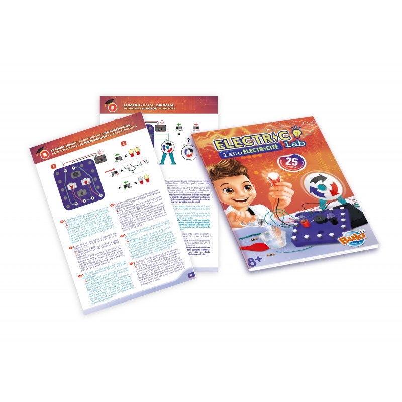 Discover the basics of electricity by building 25 circuits in total safety.Connect the components on the circuit board: bulbs, buzzer, motor, resistorsÖ Discover how electricity flows through your as